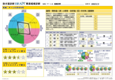 チーム(組織)に所属するメンバーの効き脳の平均を算出したもので、チーム全体の効き脳のタイプが分かります。チーム(組織)の傾向を理解することで、自分の役割をより明確にすることができます。