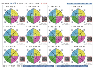 市販のネームカードやラベルシールに効き脳(レーダーチャート部分)を印刷し、研修時のツールや携帯するカードとしてご利用いただいております。